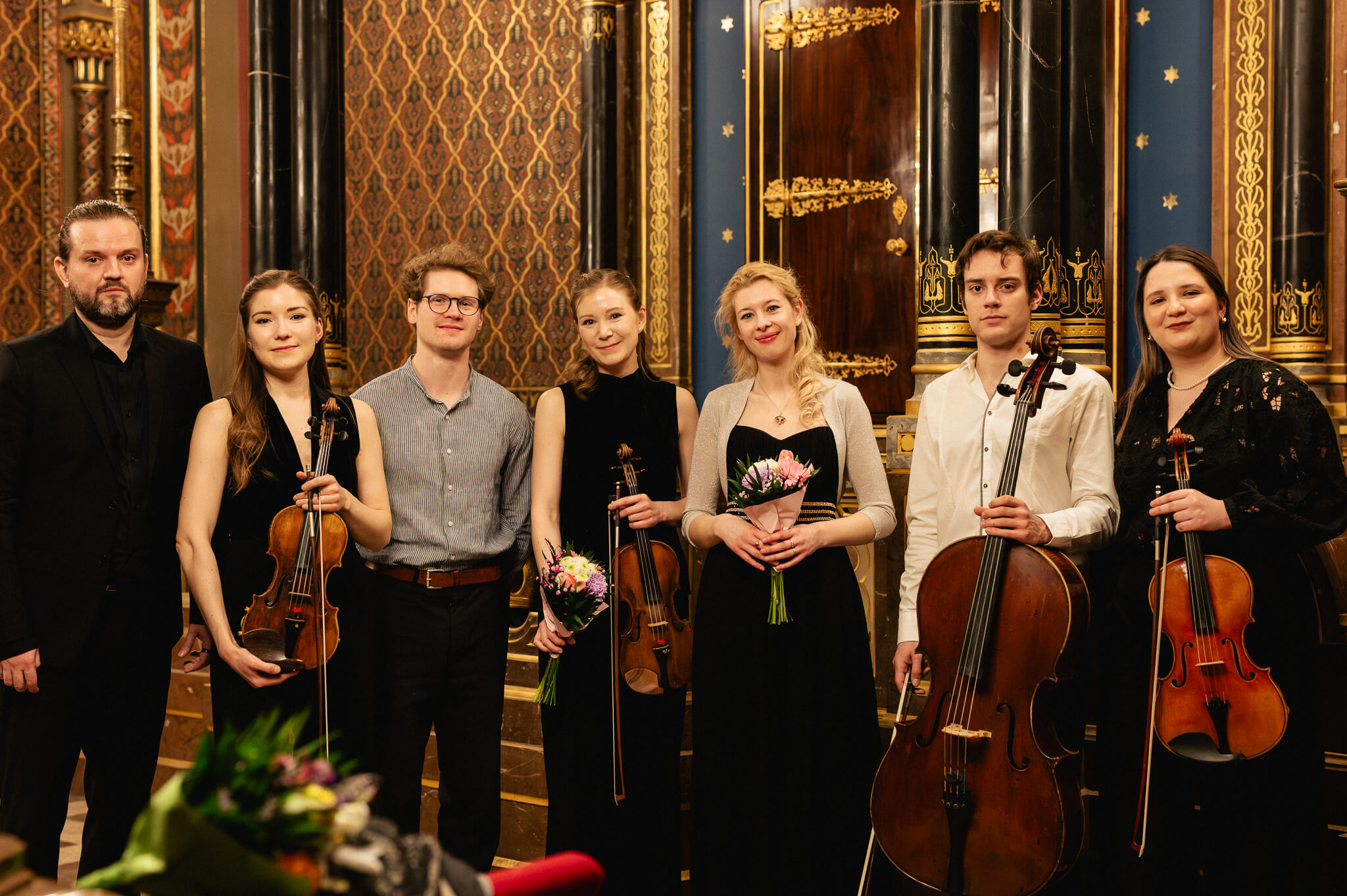 Composer and guitarist Lukáš Sommer(CZ), composer and clarinettist Aleš Pavlorek (CZ), board member of the Music for Everlasting Hope Foundation Martina Jankovská (CZ), artistic director of the festival Kristina Vocetková (CZ), composer Yuval Shaked (IL), and members of the Belfiato Quintet (CZ).